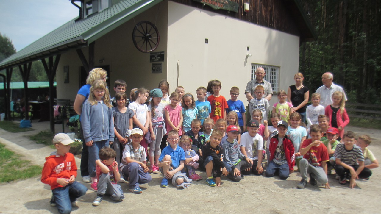 1 czerwca 2016 roku 41 uczniów klas Ib i IIc w ramach Dnia Dziecka pojechało do Leśnictwa Rogalec odkrywać tajemnice lasu. Pierwszym etapem było spotkanie z podleśniczym, panem Bogdanem Ciesielskim i stażystą panem Maciejem Wroniewskim. Dzieci miały okazję obejrzeć tamy budowane przez bobry, żeremia, usłyszały wiele ciekawostek dotyczących życia tych zwierząt. Następnym etapem była Kwatera „Bąkówka” w Łucznicy. Opowieści o zwierzętach nie było końca. Myśliwy, pan Mirosław Bauer tak zainteresował wszystkich, że z wielkim zaciekawieniem wsłuchiwaliśmy się w opowieści o ptaku, który w locie „chrapie”, zwierzętach, które mają „łopaty”, „kielnię”, „szable” czy też „fajki”. Nie obyło się bez QUIZU PRZYRODNICZEGO, w którym dużą wiedzą na temat zwierząt wykazała się grupa Małgosi Grzegrzółki, Julki Gosławskiej i Oliwki Miętus (klasa I) oraz grupa Natalki Piesio i Oliwki Kocyk (klasa II). Przerywnikami były zabawy z piłką. Na zakończenie- wszyscy z wielkim apetytem zajadaliśmy kiełbaski z grilla.