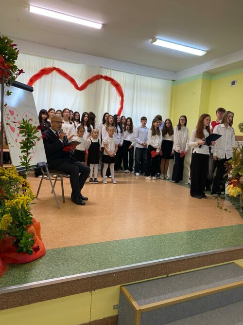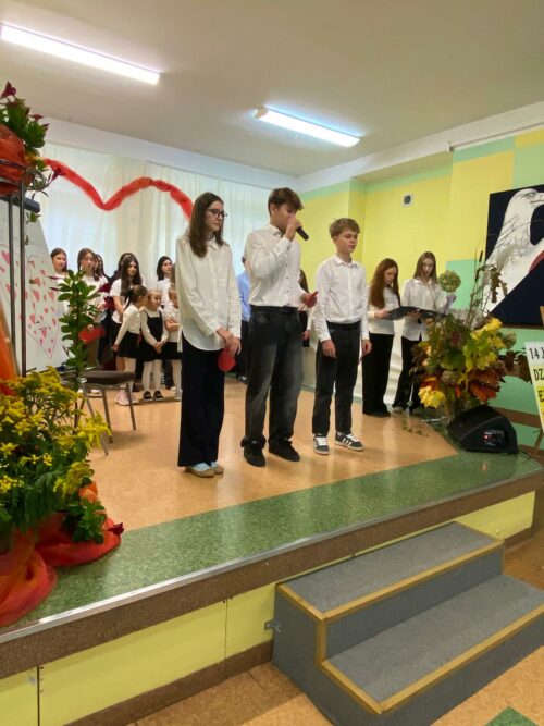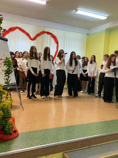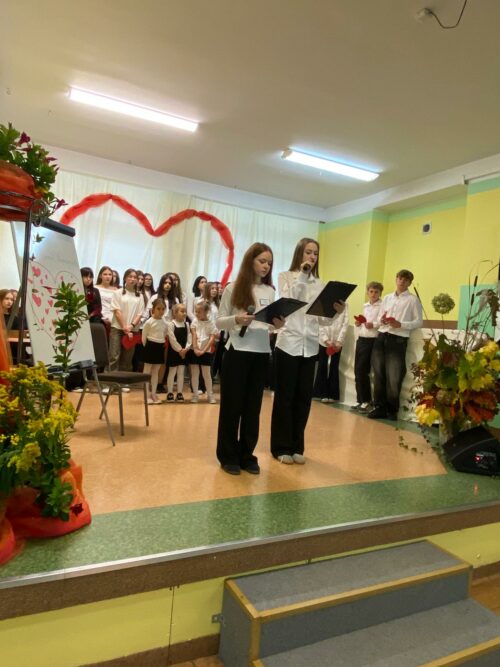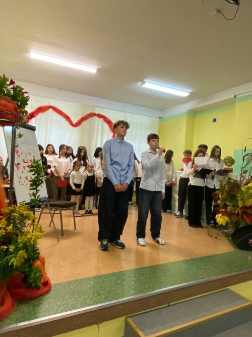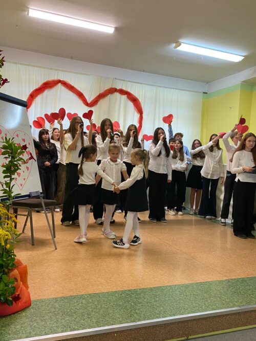 Motywem przewodnim spotkania było „Serce Nauczyciela” – serce, które bije troską, cierpliwością i pasją, by każdego dnia towarzyszyć uczniom w ich zmaganiach, odkryciach i sukcesach. Wierszem i piosenką uczniowie wyrazili wdzięczność nauczycielom za ich trud, poświęcenie oraz codzienną pracę pełną oddania i życzliwości.