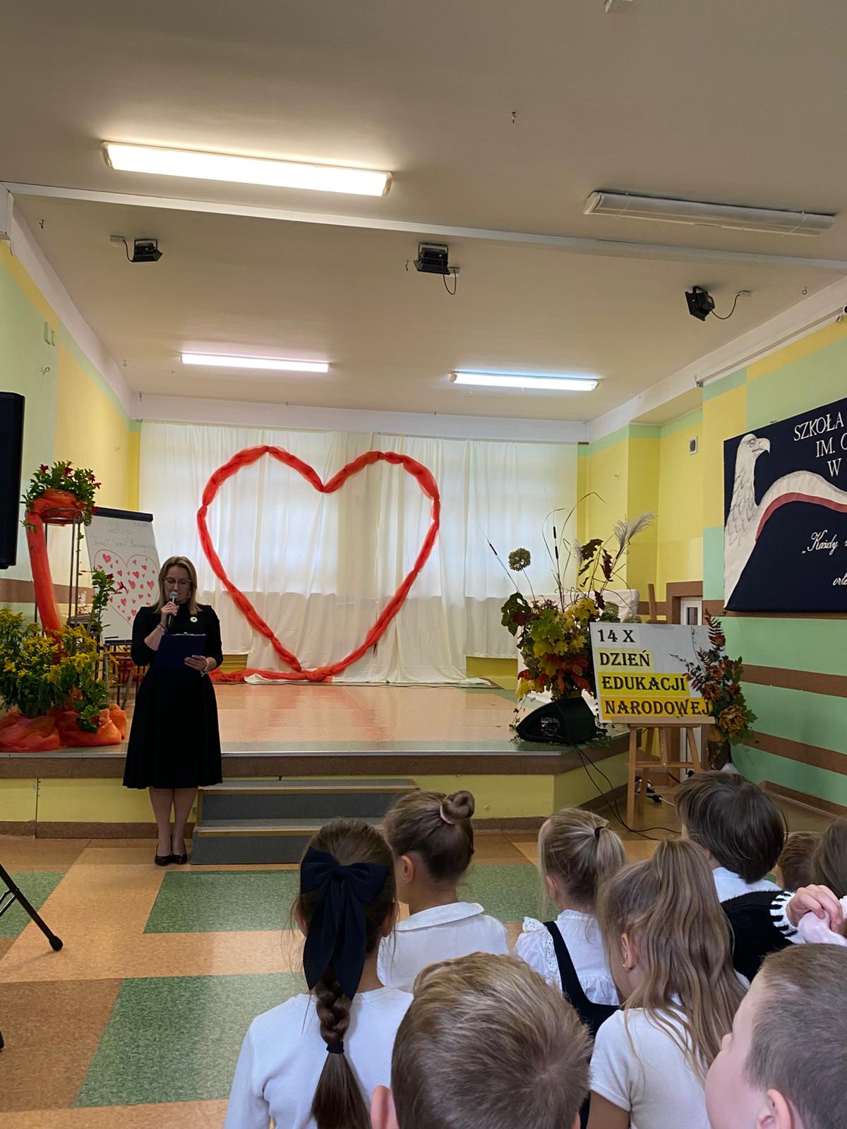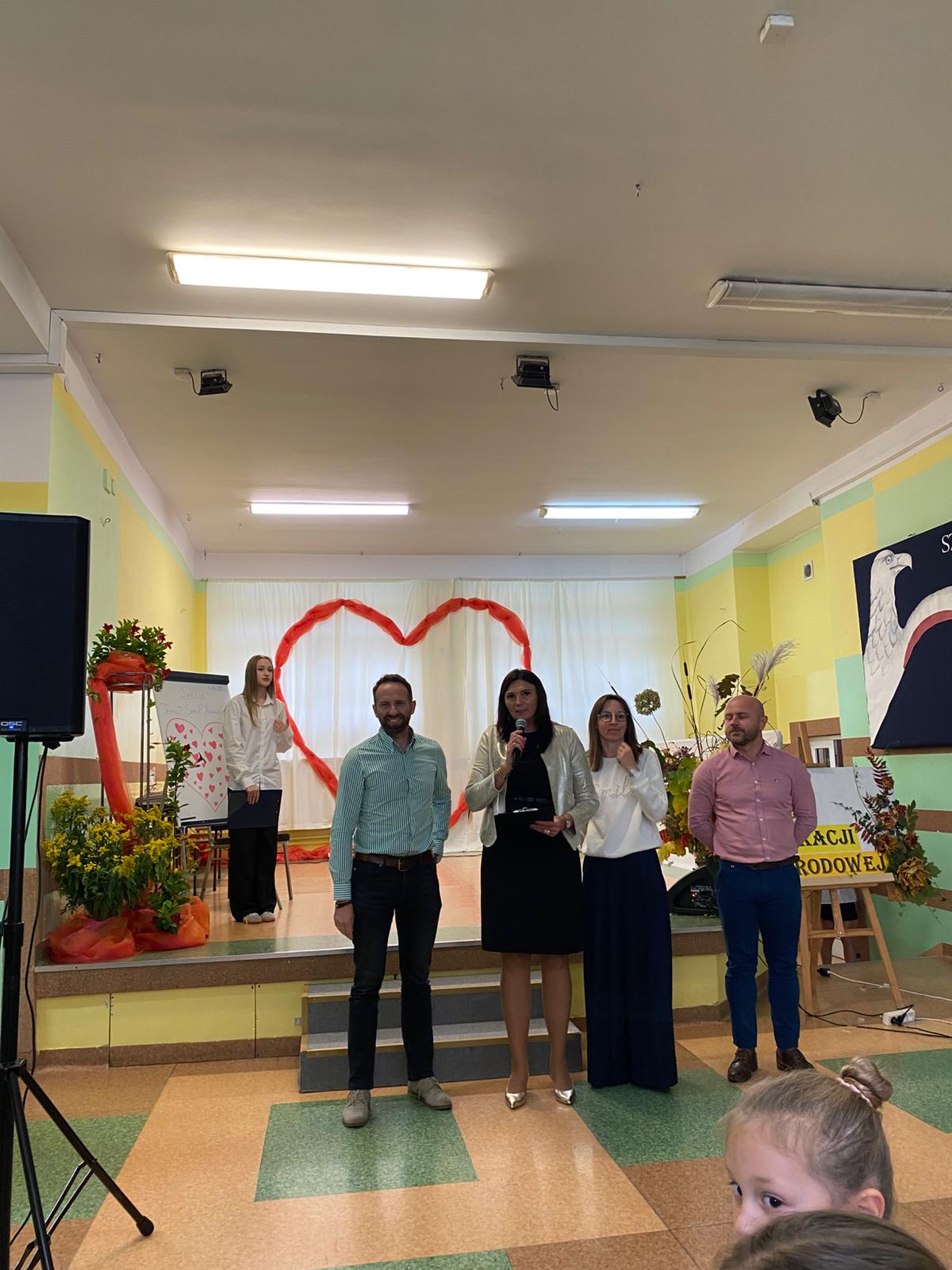 Motywem przewodnim spotkania było „Serce Nauczyciela” – serce, które bije troską, cierpliwością i pasją, by każdego dnia towarzyszyć uczniom w ich zmaganiach, odkryciach i sukcesach. Wierszem i piosenką uczniowie wyrazili wdzięczność nauczycielom za ich trud, poświęcenie oraz codzienną pracę pełną oddania i życzliwości.