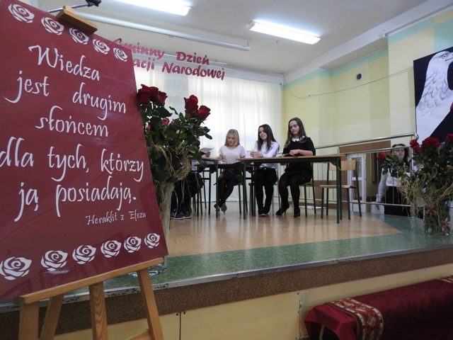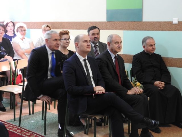 Część oficjalna była okazją do wystąpień okolicznościowych zaproszonych gości. Głos zabrali pan Grzegorz Woźniak, pani Stanisława Prządka, pan Marek Chciałowski, ksiądz proboszcz Jerzy Janowski, pani Halina Poszytek, panTomasz Łysiak oraz przewodnicząca Rady Rodziców pani Magdalena Erdman-Rękawek. Wszyscy podkreślali, jak ważną rolę pełnią w życiu młodych ludzi nauczyciele i wychowawcy, jak odpowiedzialna jest misja, którą pełnią. Nauczyciele przyjmowali podziękowania za trud wkładany w wychowanie młodych pokoleń Polaków oraz życzenia sukcesów w życiu osobistym i zawodowym, wytrwałości oraz satysfakcji.