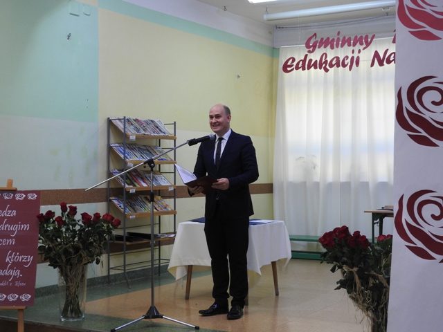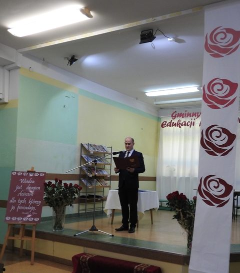 Następnie głos zabrał pan Wójt Marcin Kołodziejczyk, który podkreślił niezwykłą wartość pracy pedagogów „We współczesnym świecie bycie dobrym nauczycielem jest niezwykle trudne. Do wielu podstawowych obowiązków co roku dodawane są kolejne, szczególnie związane z koniecznością dostosowania dokumentacji do zmieniających się przepisów. Potraficie sprostać wzrastającym względem Państwa wymaganiom, zarówno władz samorządowych, rodziców czy nawet samych uczniów. Własnym przykładem pokazujecie uczniom, jak poradzić sobie w świecie, który wymaga od nas coraz więcej”. Po życzeniach zostały wręczone Nagrody Wójta Gminy Garwolin dla dyrektorów i  nauczycieli, którzy w minionym roku szkolnym wyróżnili się szczególnymi osiągnięciami zawodowymi. Uroczystość stała się również okazją do wręczenia Nagród Dyrektora Szkoły nauczycielom osiągającym znaczące wyniki w pracy dydaktyczno–wychowawczej oraz pracownikom administracji i obsługi Zespołu Szkół w Michałówce. Rozdaniu dyplomów towarzyszyło wręczenie gratulacyjnych róż.