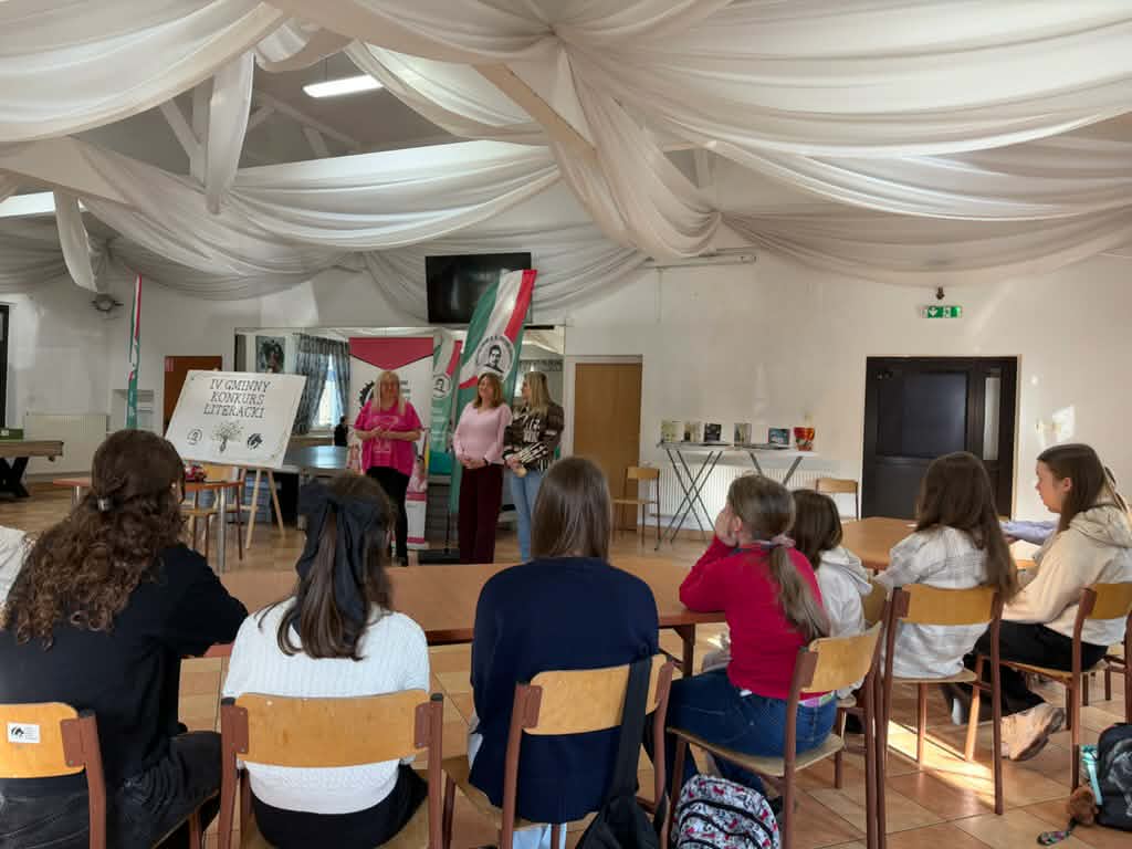 5 marca 2026r. w Gminnym Centrum Animacji Kultury odbył się IV Gminny Konkurs Literacki. Naszą szkołę reprezentowało pięć uczennic: Barbara Ujma, Kinga Wrona, Alicja Urbanik, Natalia Sabat, Maria Zawadka. Zadaniem konkursowym było napisanie wiersza na temat: „Mój czworonożny przyjaciel”. Pracę uczniów poprzedziło spotkanie ze znaną poetką Agnieszką Frączek. Jury wyłoniło laureatów, a wśród nich Alicję Urbanik (I miejsce) i Kingę Wronę (IImiejsce). Gratulujemy!