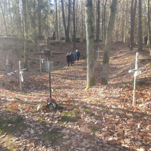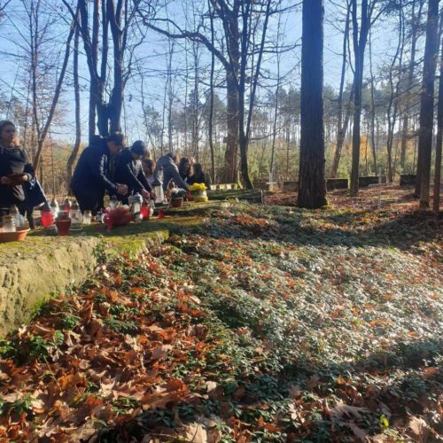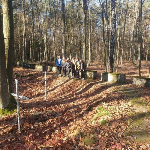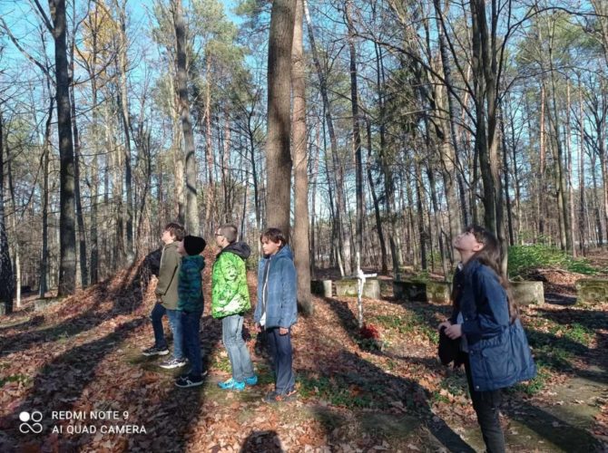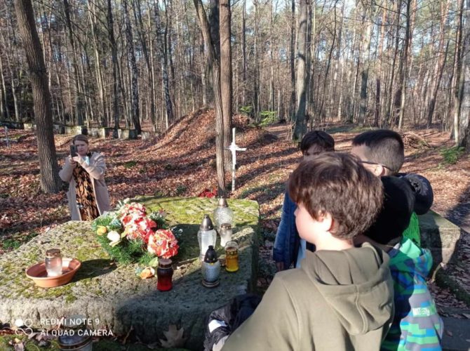 10.11.21 r. uczniowie klasy 6a i 7c wraz z wychowawczyniami udali się do pobliskich Lisich Jam, aby oddać hołd tym wszystkim, którzy w latach 1942-1944 zginęli i zostali pochowani w masowych grobach. Pamięć poległych uczczono minutą ciszy, zapalonymi zniczami i krótką modlitwą.