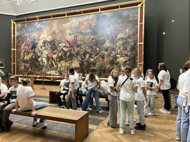 W tegorocznej edycji ogólnopolskiego konkursu „Spotkania ze sztuką” laureatem został Franciszek Zawadzki z klasy 4b. Podczas wycieczki do Muzeum Narodowego w Warszawie, która była nagrodą dla klasy laureata, otrzymał on od organizatora Fundacji PGE nagrodę indywidualną. Koleżanki i koledzy Franciszka obejrzeli najciekawsze zabytki Muzeum, odwiedzili wszystkie galerie MNW, a w każdej z nich poznali niezwykłe obiekty i związane z nimi opowieści.