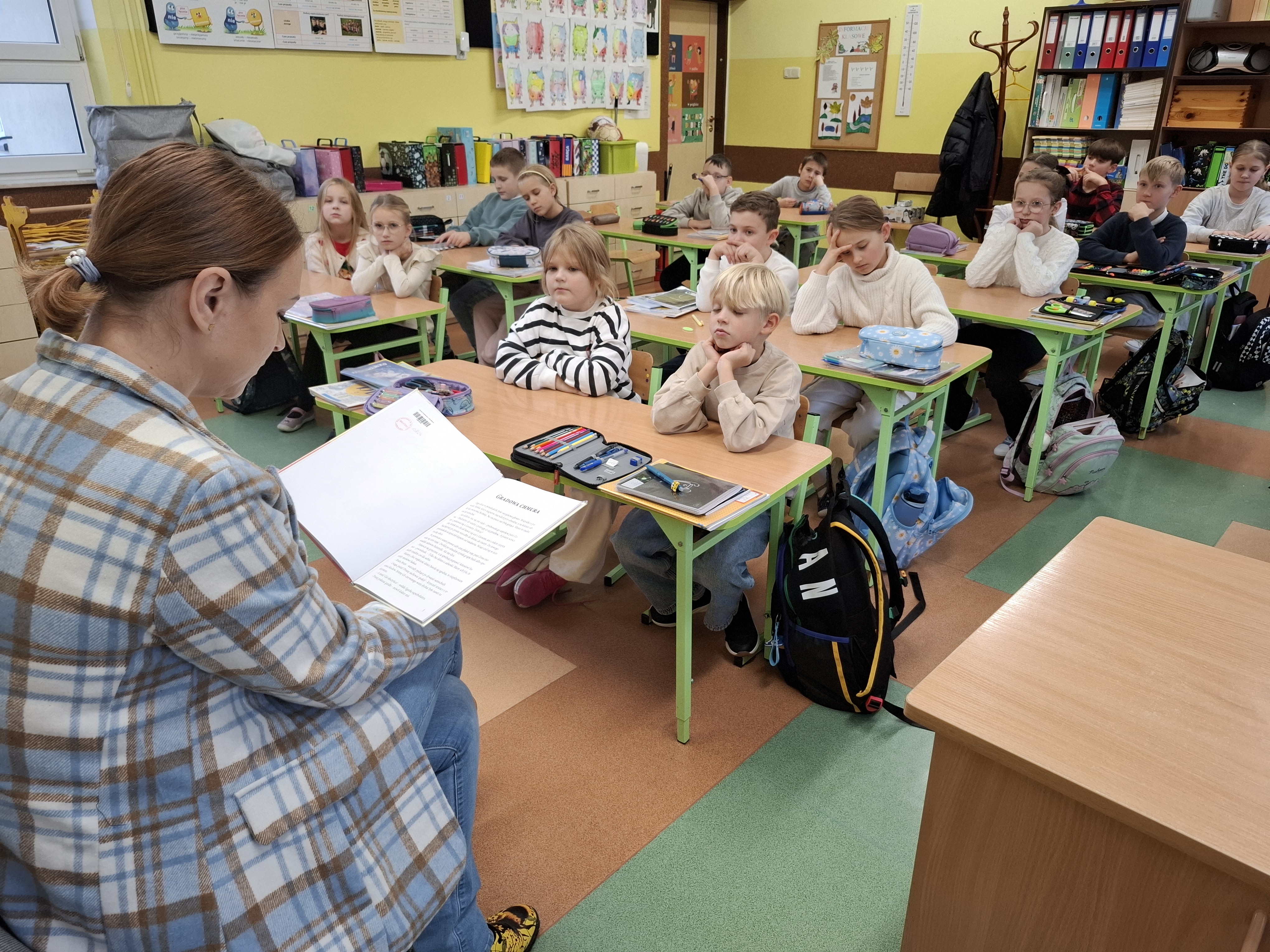 Dnia 27 października odbyło się głośne czytanie z elementami biblioterapii. Przy okazji czytania książki Anny Paszkiewicz „O złości, co się lubi nadymać”, skierowanej do uczniów klas 1-3, rozmawiano o uczuciach, emocjach oraz sposobach radzenia sobie ze złością.