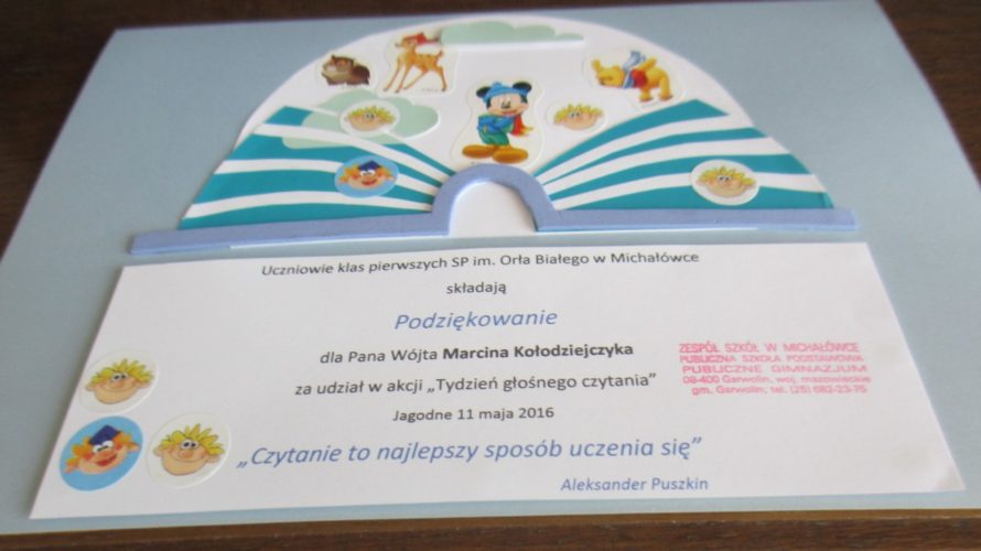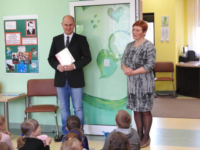 W dniu 11 maja 2016 roku na zaproszenie pracowników filii bibliotecznej w Jagodnem klasy pierwsze b i c spacerkiem udały się na spotkanie w bibliotece. Na miejscu czekał już na dzieci Wójt Gminy Garwolin Pan Marcin Kołodziejczyk. W ramach akcji Tygodnia Głośnego Czytania dzieci usłyszały opowieść Czesława Janczarskiego „Jak Wojtek został strażakiem”. Na zakończeniu bez trudu pierwszoklasiści rozwiązali zgaduj- zgadulę dotyczącą treści książki, podobnie odgadywali zagadki zadawane przez Pana Wójta. Spotkanie zakończył słodki upominek, a dzieci obiecały, że z przyjemnością sięgną po kolejną książkę.
