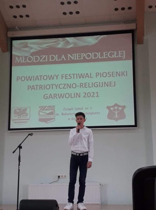 Wśród uczestników festiwalu byli również uczniowie naszej szkoły, którzy przygotowali się do konkursu pod opieką Pani Niny Borkowskiej. Swoje umiejętności wokalne zaprezentowali: Antonina Baduchowska z klasy Va, która zajęła I miejsce w kategorii klas IV-VI oraz Antoni Dziubak z klasy VII a, który otrzymał wyróżnienie w kategorii wiekowej klas VII-VIII. Uczestnicy, którzy w tak niezwykły sposób uczcili pamięć o Niepodległej,  otrzymali dyplomy oraz cenne nagrody.