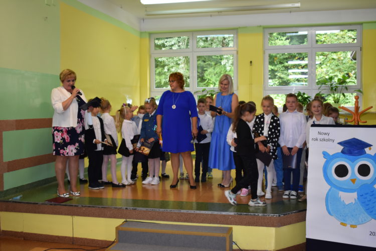 1 września 2021 roku odbyła się w naszej szkole uroczystość pasowania na ucznia. Pierwszoklasiści zostali włączeni do grona uczniów naszej szkoły. Pani Dyrektor Agnieszka Szczypek przedstawiła wychowawców klas pierwszych, opowiedziała nowym uczniom