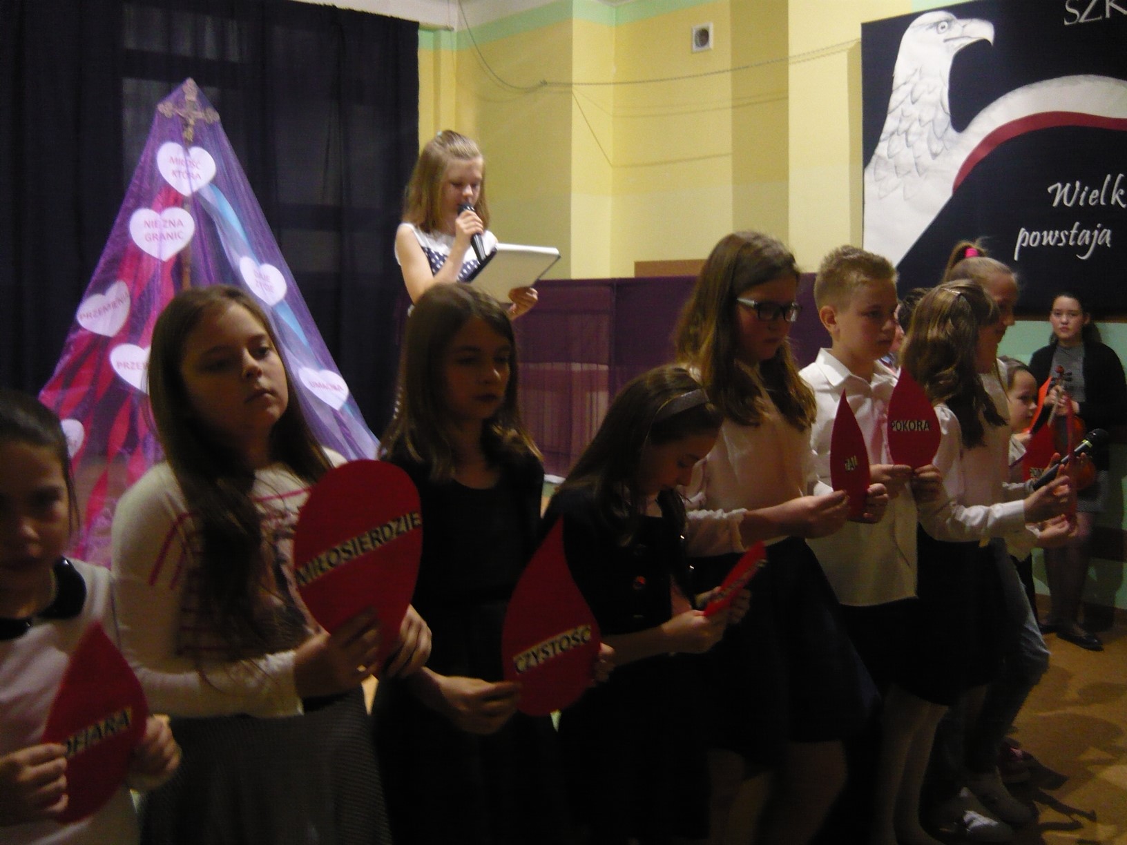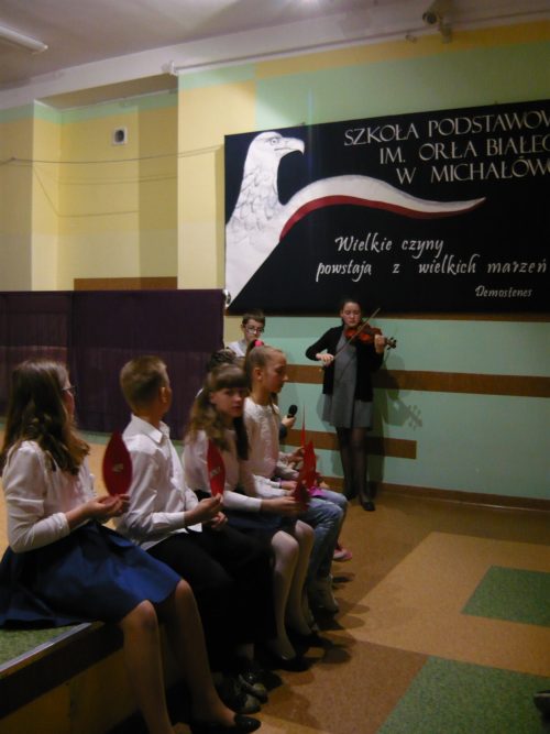 Występ uświetniła uczennica Aleksandra Przybysz z klasy VB wykonując na skrzypcach utwór :,, Któryś za nas ….”