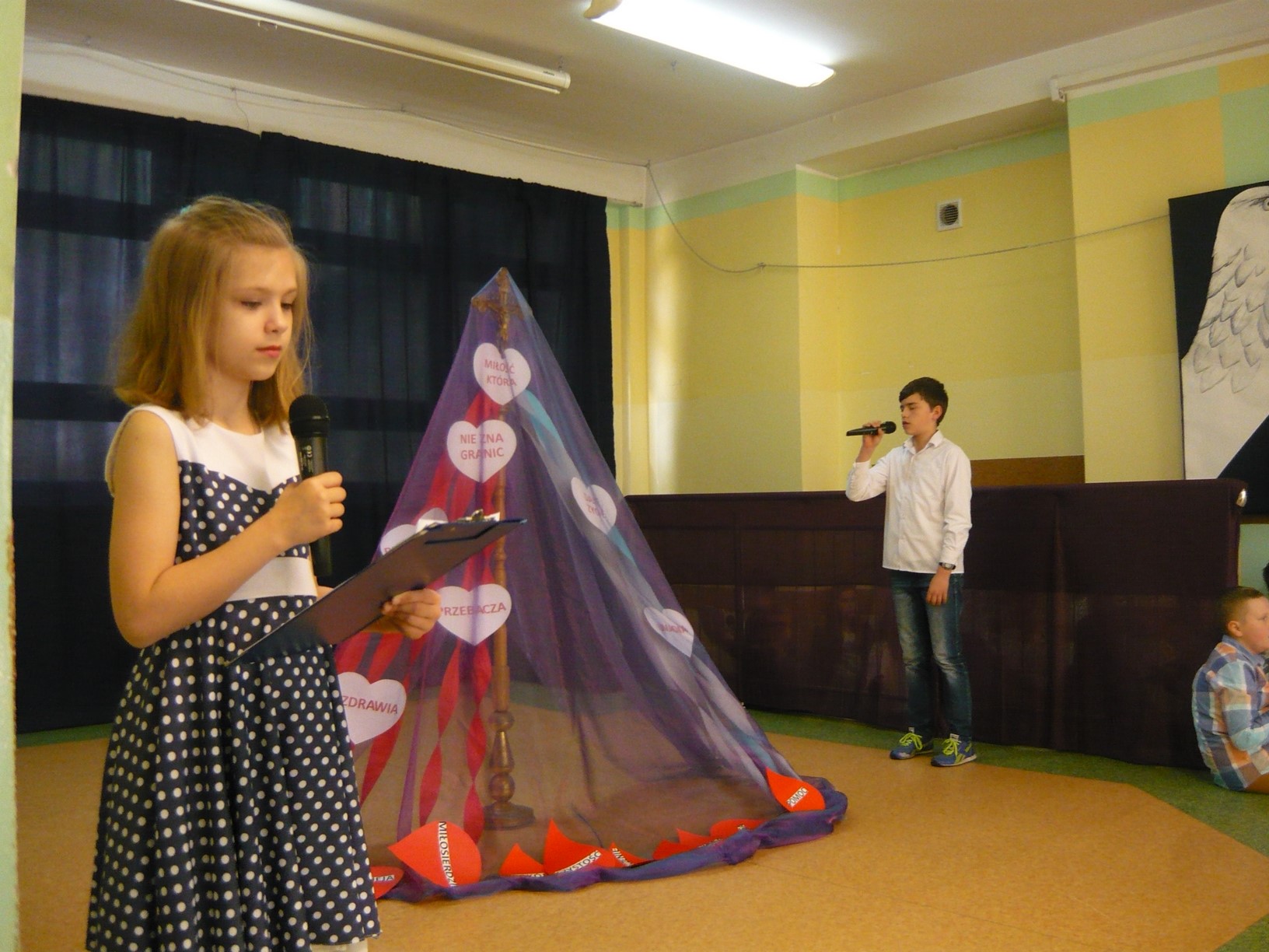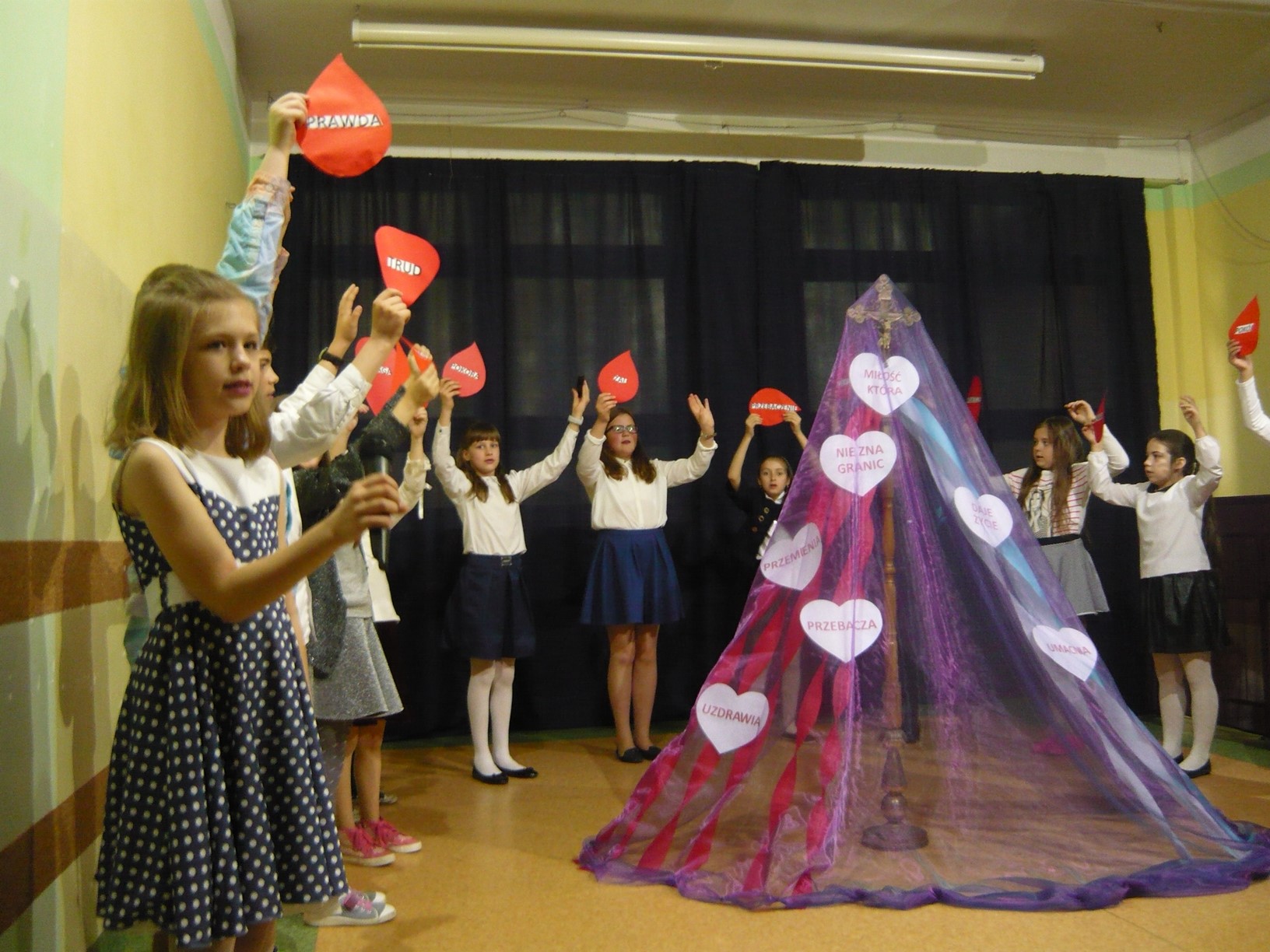 Tak niedawno śpiewaliśmy: ,, Cicho, cicho i kroku zwolnijcie , bo miniecie stajenkę ubogą…” Dzisiaj 12 kwietnia 2017 roku w naszej szkole na przedstawieniu pt: ,,Z Panem Jezusem na Drodze Krzyżowej” też wołaliśmy o ciszę, bo tylko w ciszy usłyszeć można oddech Jezusa słuchającego słów wyroku, upadającego na twarde kamienie, przybijanego do krzyża ,wypowiadającego ostatnie słowa : ,, W Twoje ręce powierzam ducha mego…” Wielka to tajemnica, a zrozumieć ją może tylko ten, kto wyruszy razem z Jezusem.