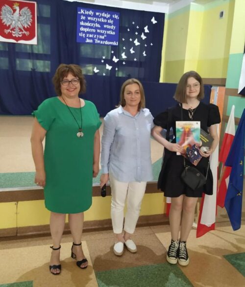 W marcu 2022 r. uczennica klasy V b Dorota Moch przystąpiła do części plastycznej XXIII edycji Ogólnopolskiego Konkursu Geologiczno – Środowiskowego „Nasza Ziemia – środowisko przyrodnicze wczoraj, dziś i jutro” pod hasłem „ Energia drzemiąca w skałach”. Organizatorem konkursu był Państwowy Instytut Geologiczny, Państwowy Instytut Badawczy i Muzeum Geologiczne w Warszawie. Pod kierunkiem nauczycielki plastyki pani Anny Osiak Dorota przygotowała pracę plastyczną, która zajęła I miejsce w półfinale ogólnopolskim, zaś w finale pozwoliła uczennicy zająć miejsce III. Gratulujemy Dorocie zajęcia tak wysokiej lokaty na szczeblu krajowym i życzymy rozwijania talentu i pasji artystycznych oraz dalszych sukcesów w konkursach plastycznych.