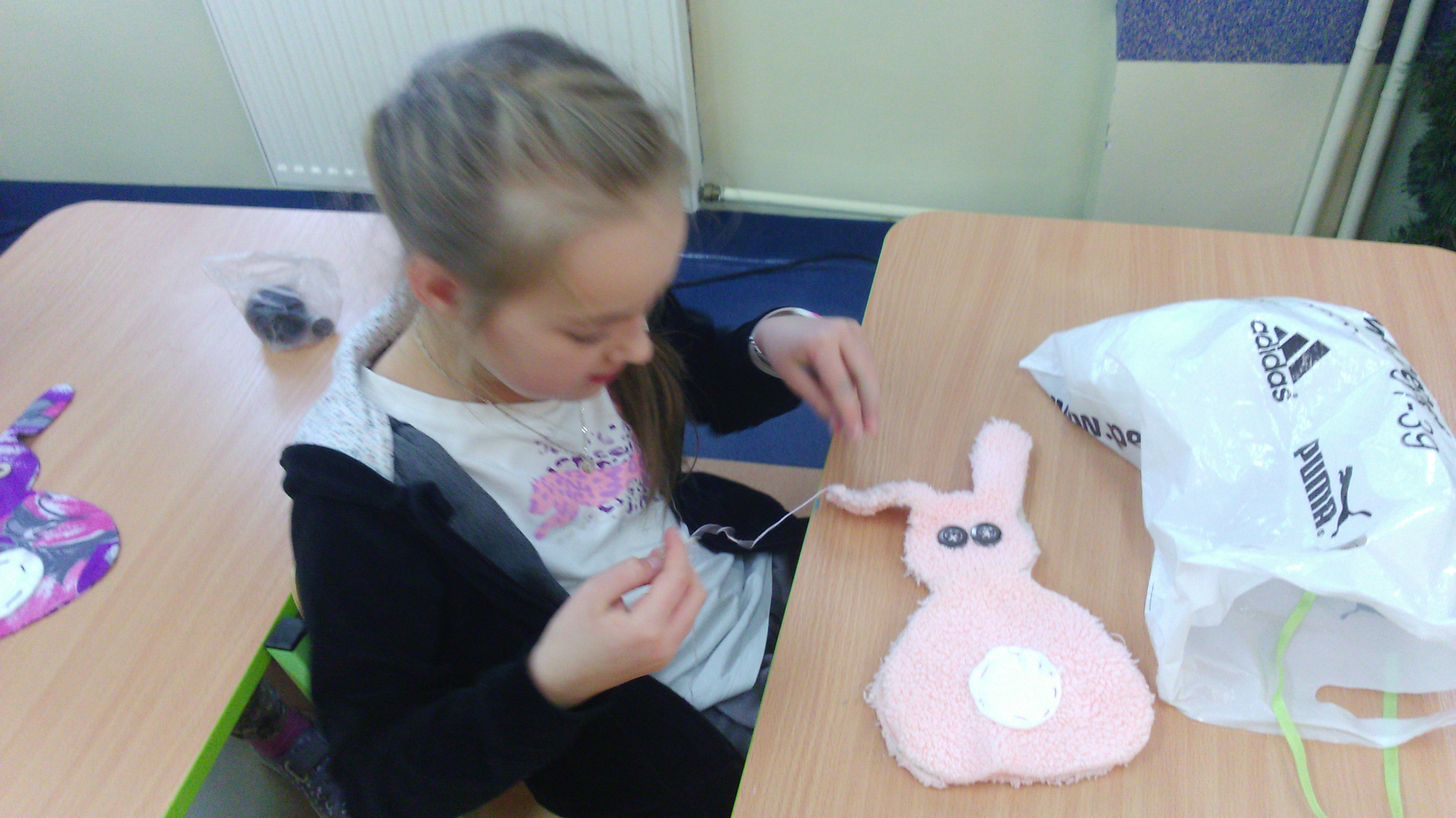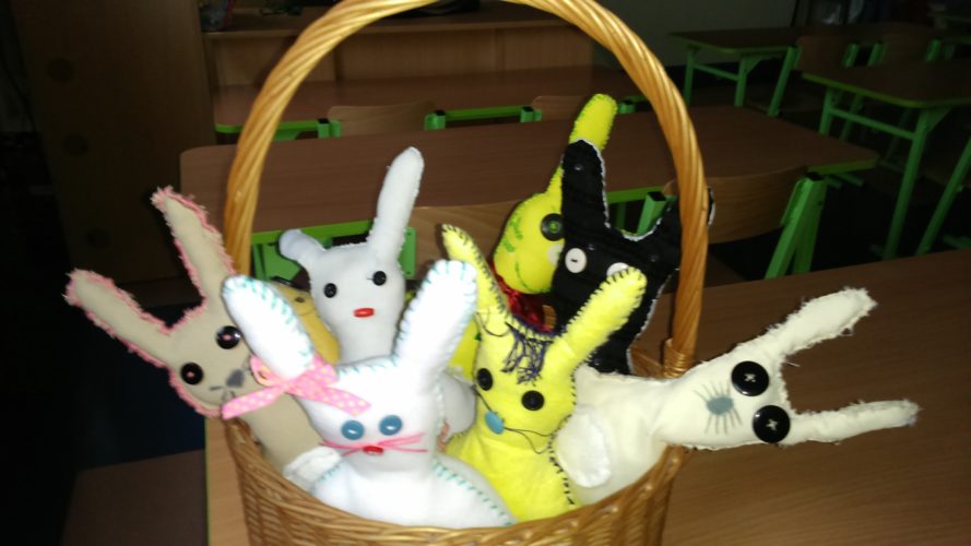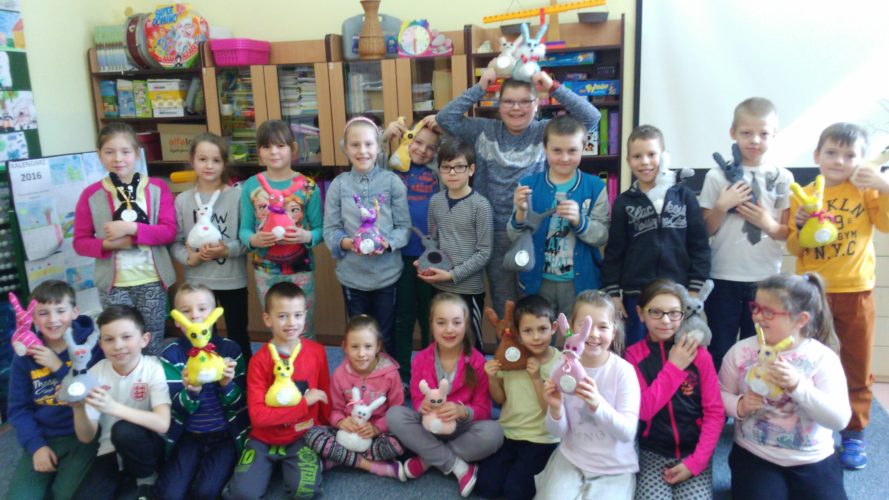 Święta Wielkanocne kojarzą się głównie z malowaniem pisanek, a w Michałówce z szyciem wielkanocnych zajączków. Dzieci według instrukcji przygotowały potrzebne materiały i narzędzia. Szycie ściegiem na okrętkę i fastrygą odbywało się codziennie w klasie pod bacznym okiem nauczyciela. Nikt nie przypuszczał, że przyszywanie guzików, fastrygowanie może sprawić dzieciom tyle przyjemności. Wystarczy spojrzeć na prace by stwierdzić, że było warto.