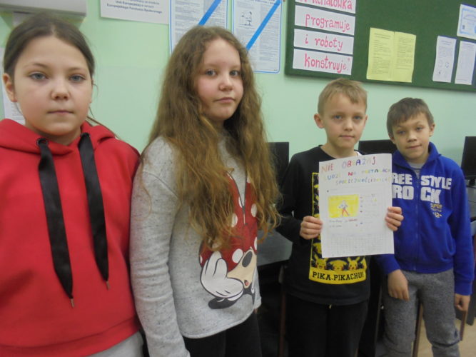 Poprzez oglądanie filmów edukacyjnych, dyskusję, analizę przypadków – uczniowie poznawali różne zagrożenia wynikające z korzystania z internetu oraz uczyli się przeciwdziałania tym niebezpieczeństwom. Nasi młodzi internauci mogli również dowiedzieć się, gdzie mogą uzyskać pomoc i wsparcie w sytuacji, gdy sami staną się ofiarami sieciowych ataków.