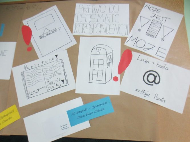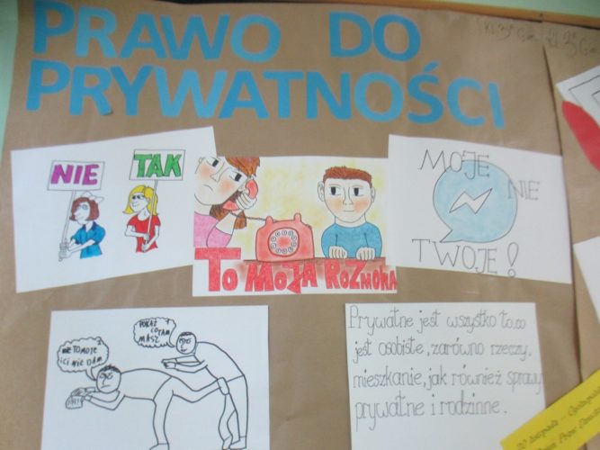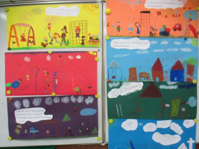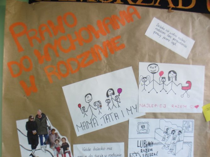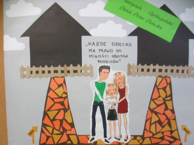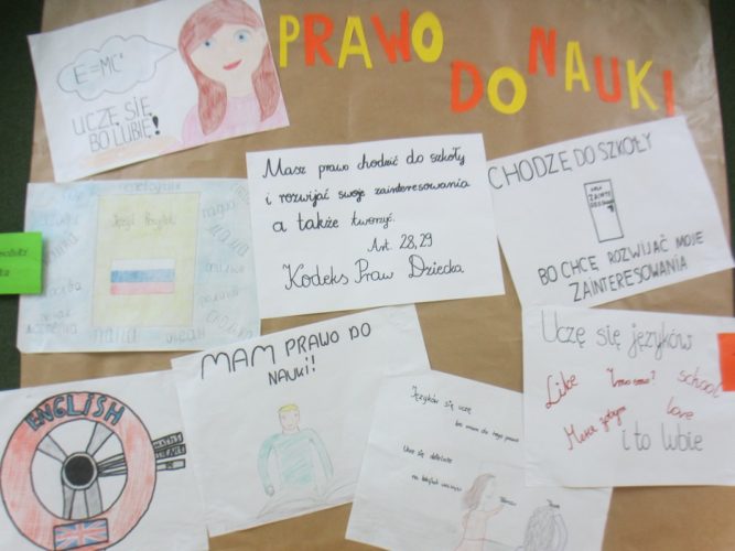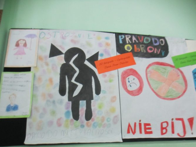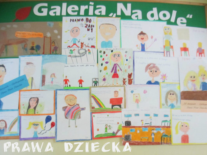 Tydzień Praw Dziecka to akcja zorganizowana w naszej szkole, mająca na celu podniesienie świadomości dzieci na temat ich praw. W czasie lekcji wychowawczych oraz spotkań z pedagogiem dzieci poznawały zapisy Konwencji o prawach dziecka, dowiedziały się, jakie instytucje mają stać na straży, by były przestrzegane. Efektem tych działań są bardzo ciekawe prace plastyczne, wykonane przez uczniów szkoły podstawowej i gimnazjum, wyeksponowane w różnych miejscach szkoły.