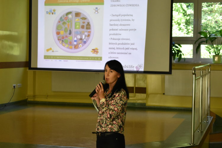 W dniu 22.09.2021 r. w naszej szkole odbyło się spotkanie z dietetykiem, panią Magdaleną Ochnio. Uczestniczyły w nim klasy VII i VIII. Uczniowie dowiedzieli się, jakie są podstawowe zasady zdrowego żywienia. Jak powinna wyglądać dieta nastolatka.