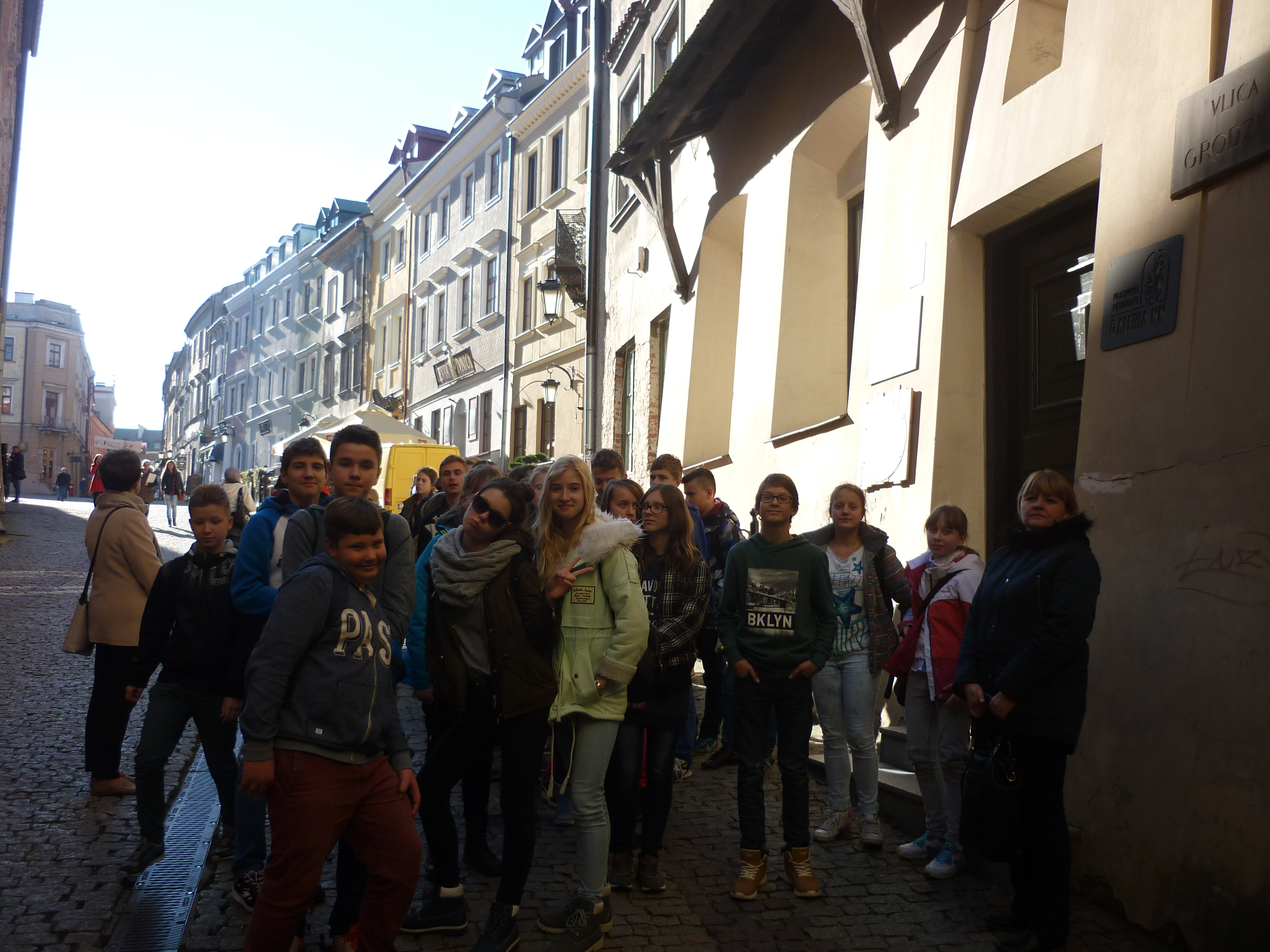 Dnia 27 października 2015 roku uczniowie klas pierwszych i drugich gimnazjum wraz ze swoimi nauczycielkami p. E. Witak,p. M. Gałązką oraz p. U. Jędruszko pojechali na wycieczkę do Lublina. Zwiedzanie rozpoczęto od Muzeum na Majdanku. Zwiedzający obejrzeli komory gazowe, barak warsztatowy, baraki mieszkalne oraz krematorium. W baraku nr 62 mieścił się warsztat szewski, w którym pracowali więźniowie obozu a obecnie znajduje się w nim ekspozycja, gdzie można zobaczyć strój więźniarski, blaszki z numerami, przedmioty codziennego użytku np. łyżki, widelce, grypsy pisane przez więźniów. Są tam także audiowizualne relacje więźniów oraz nowoczesne aplikacje multimedialne poświęcone historii obozu.