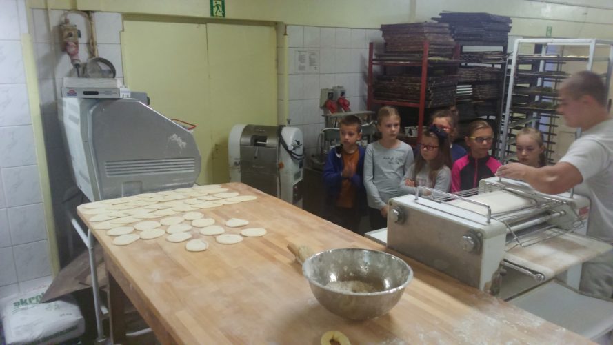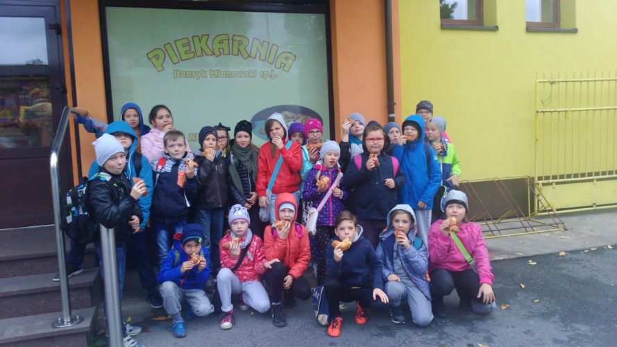 4 października 2016 roku uczniowie klasy 3a autobusem PKS pojechali do Garwolina. Odwiedzili piekarnię pana Mianowskiego. Dzieci miały okazję poznać od „kuchni” pracę piekarza. Poznały kolejne etapy powstawania chleba oraz maszyny służące do jego produkcji. Dodatkowo obejrzały ręczny sposób wyrabiania słodkich rogalików, których degustacja odbyła się na zakończenie spotkania. Oczywiście odbyły się zakupy w sklepie przy piekarni.