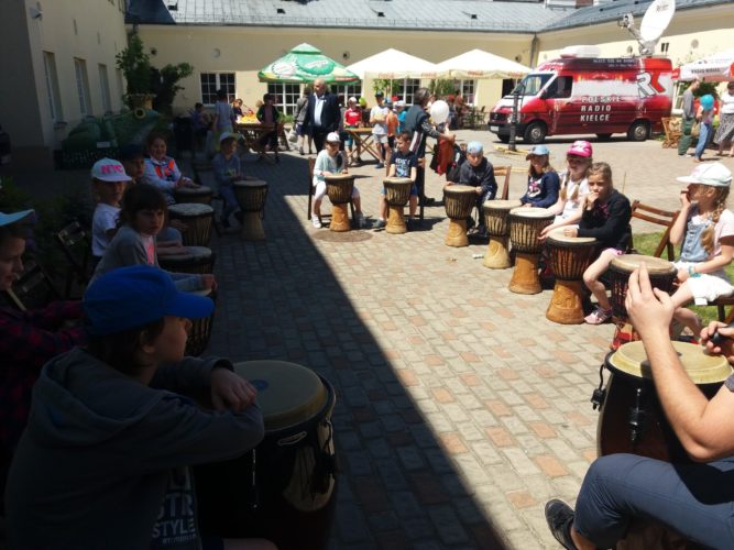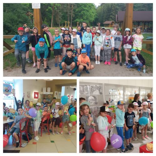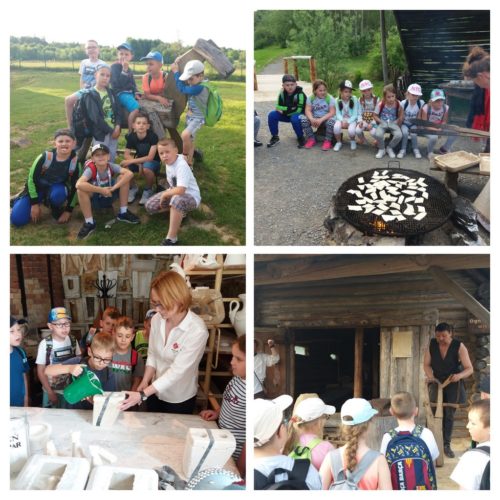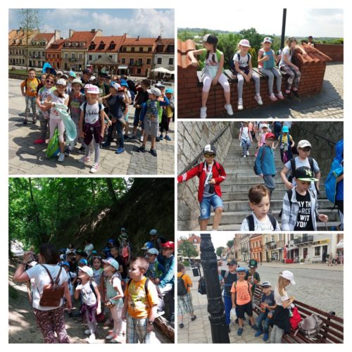 31 maja uczniowie klas II b i III c pojechali na dwudniową wycieczkę, której pierwszym etapem był Sandomierz. Miasto jest położone na siedmiu wzgórzach, stąd nazwa „mały Rzym”. Zwiedzanie rozpoczęliśmy od trasy podziemnej, która miejscami przebiegała nawet 12 metrów pod ziemią. Powędrowaliśmy również do wąwozu, a spacerując uliczkami miasta niektórzy z nas wypatrywali bacznie księdza Mateusza. W pewnym momencie nawet wydawało się, że przemknął na rowerze. Kolejnym etapem naszej podróży był Ćmielów i warsztaty w Muzeum Żywej Porcelany. Na zakończenie pierwszego dnia przenieśliśmy się w czasie do czasów średniowiecznych. Poznaliśmy specyfikę życia w tamtych czasach – spotkaliśmy szewca, kowala, garncarkę i rzeźbiarza oraz skosztowaliśmy specjalnie dla nas upieczonych na ruszcie podpłomyków. Emocji nie było końca. Dla niektórych przecież była to pierwsza noc spędzona daleko od mamy. Daliśmy radę. Następnego dnia był przecież 1 czerwca. Atrakcje związane z Dniem Dziecka pojawiały się co chwila. W Parku Miniatur w Krajnie w ciągu dwóch godzin zwiedziliśmy prawie cały świat. W Manufakturze Słodyczy w Kielcach każdy wykonał samodzielnie lizaka z karmelu. W Muzeum Zabawek trafiliśmy na wernisaż wystawy , a później na projekcję filmową i konkurs z nagrodami. Graliśmy również na bębnach pod kierunkiem instruktora. W drodze powrotnej zahaczyliśmy o Puszczę Kozienicką i napiliśmy się wody z Królewskiego Źródła. Dla uważnych uczniów był konkurs z nagrodami podsumowujący przebieg naszej wycieczki.