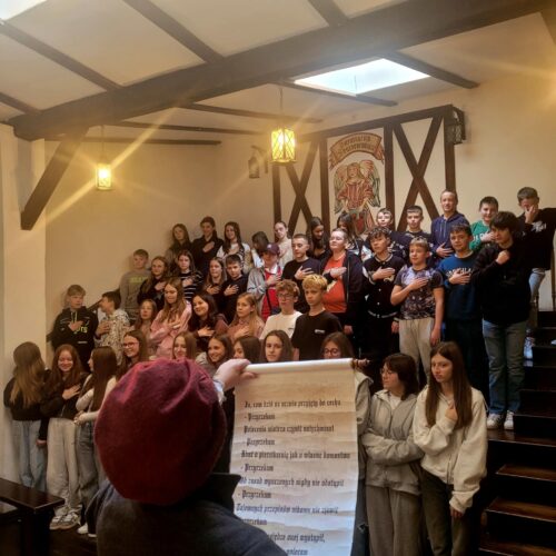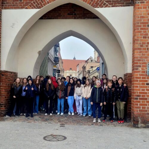 22 – 23 października 2024 roku uczniowie klas 7 wzięli udział w wycieczce do Torunia. Pierwszym punktem zwiedzania była Krzywa Wieża. Poznaliśmy legendę związaną z tą „krzywą” budowlą i każdy z nas mógł poddać się „testowi prawości”. Następnie uliczkami miasta Pan przewodnik zaprowadził nas do Domu Mikołaja Kopernika, do Bramy Klasztornej, zwiedziliśmy kościół św. Janów. Spacerowaliśmy po rynku Starego Miasta, a tam: oglądaliśmy zabytkowe kamieniczki, piernikową aleję gwiazd, osiołka, zwiedzaliśmy ratusz oraz zrobiliśmy sobie pamiątkową fotografię pod pomnikiem Mikołaja Kopernika. Zwiedziliśmy również ruiny zamku krzyżackiego. Zawitaliśmy do Muzeum Piernika. Własnoręcznie przygotowaliśmy ciasto, by później, przy użyciu drewnianych form, wypiec z niego toruńskie specjały. Kolejnym punktem wycieczki była wizyta w PLANETARIUM. Uczniowie wzięli udział w seansie. Przewodnik zabrał nas do Muzeum Podróżników im. Tony’ego Halika.Głównym motywem przewodnim stałej ekspozycji w muzeum jest pasja do podróżowania i nieodparta potrzeba człowieka do odkrywania i poznawania różnorodności świata.