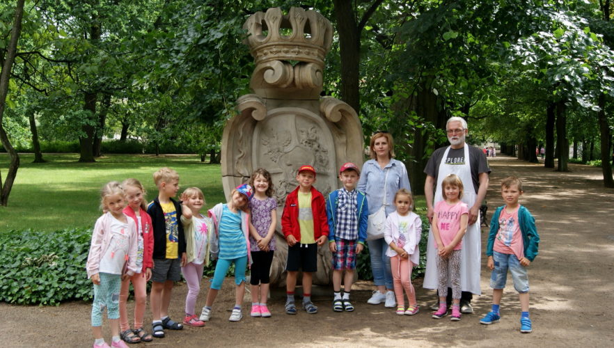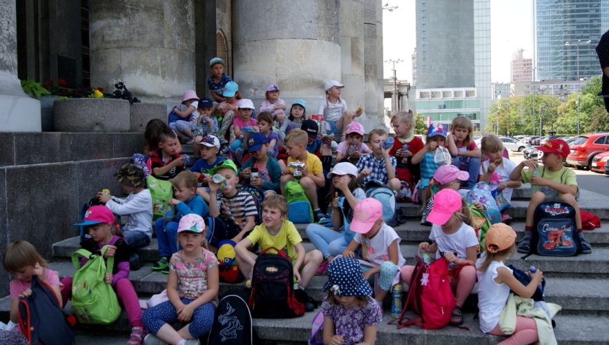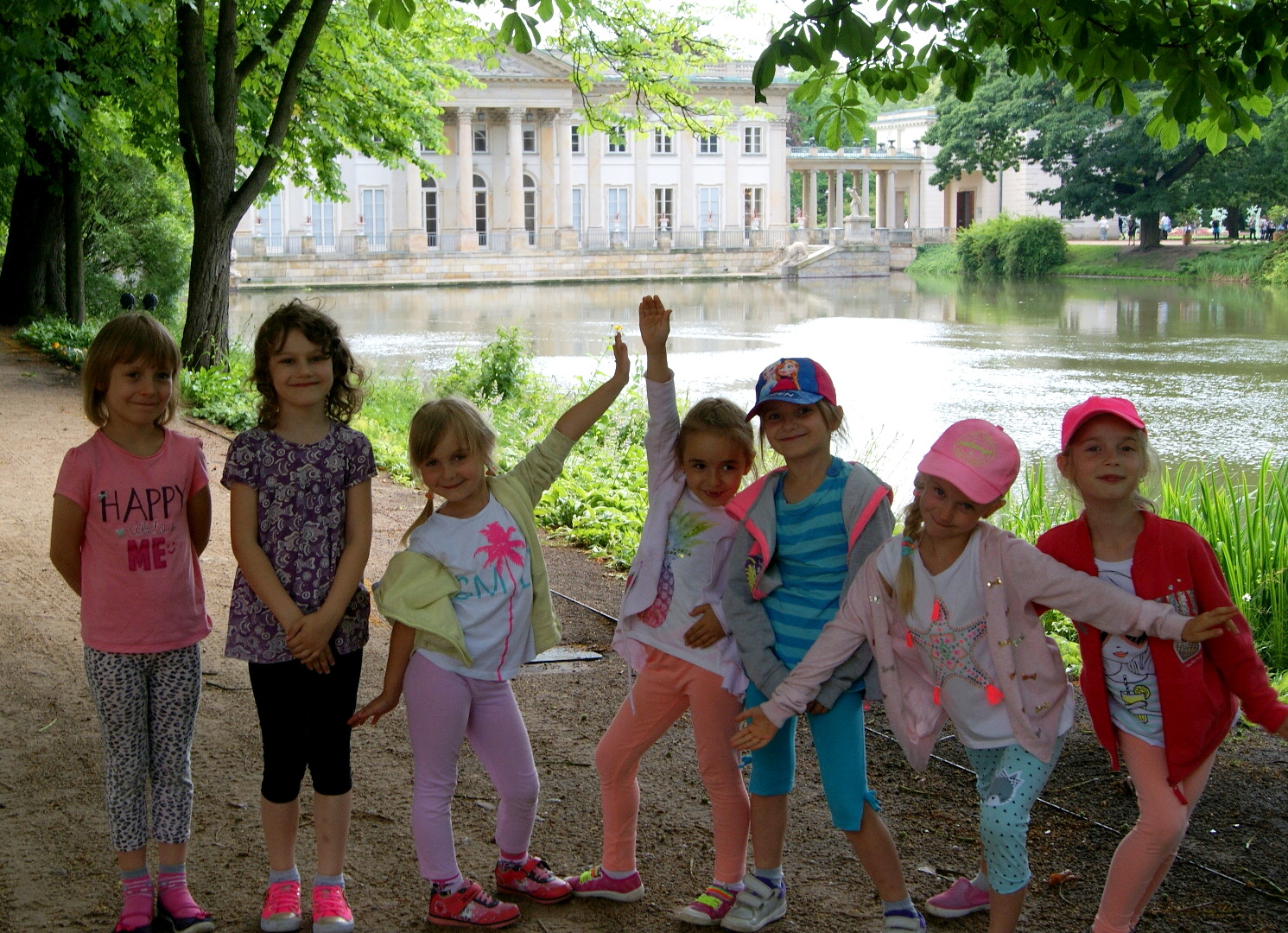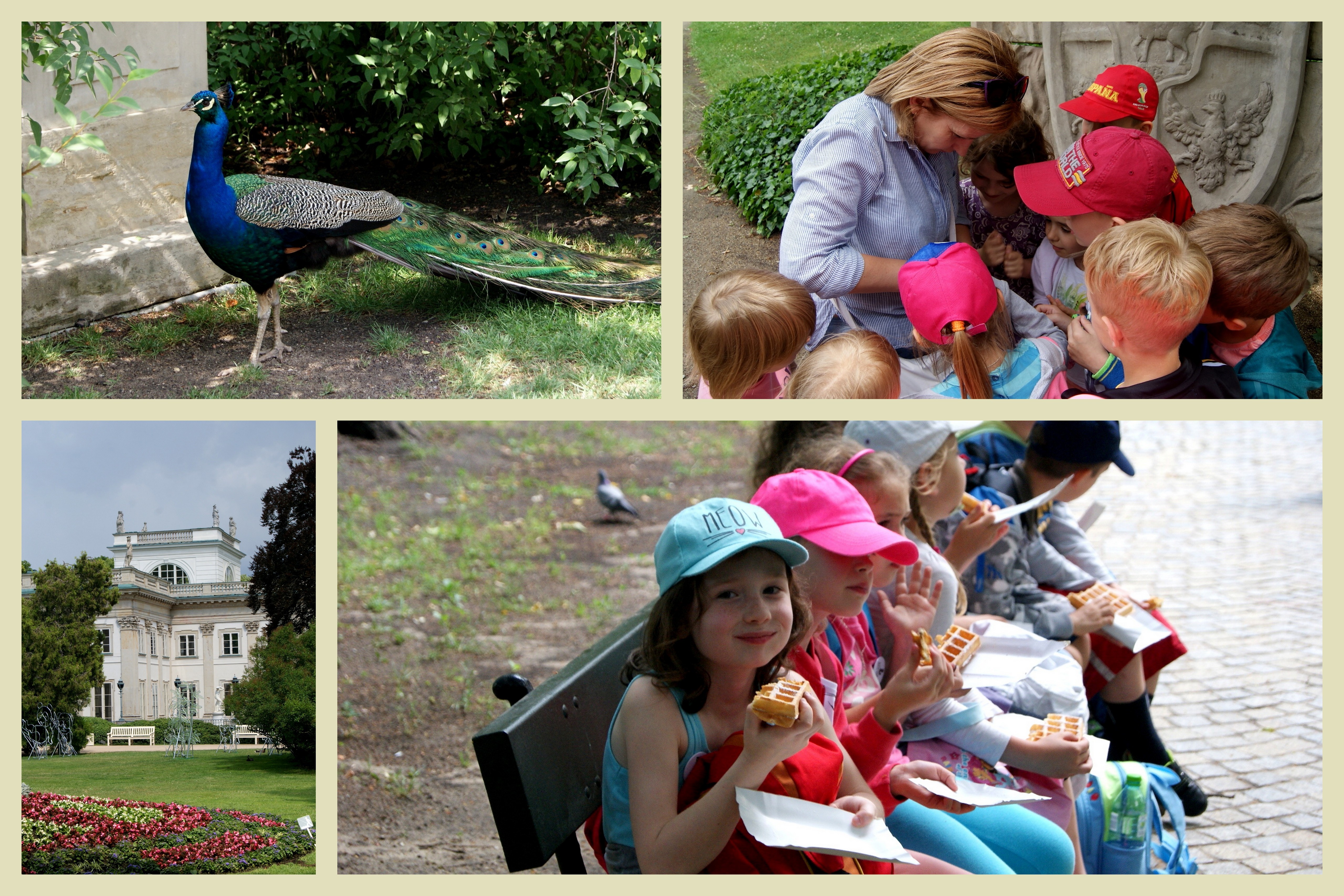 W piątek 17 czerwca ze wspaniałym humorem oraz chęcią poznania nowych miejsc klasa I a i I c wyruszyła w podróż do Warszawy. W trakcie podróży opiekunowie przeprowadzili z uczniami pogadankę na temat zasad bezpieczeństwa, które obowiązują podczas wyprawy. Pilot naszej wycieczki nieustannie „zasypywał” uczniów mnóstwem ciekawostek oraz konkursów, które przyczyniły się do uważnego słuchania. Po dotarciu do stolicy, udaliśmy się pod Pałac Kultury i Nauki. Czas wolny przeznaczyliśmy na krótki odpoczynek po podróży oraz spożyciu posiłku. Następnie cała grupa pod opieką wychowawców udała się do Teatru Lalka. Grupa została bardzo serdecznie przywitana przez pracowników teatru. Mieliśmy okazję obejrzenia wystawy „Podziemne życie lalek”. Ekspozycja zlokalizowana w piwnicach zawiera lalki teatralne z lat 1955-2005. Wszystkie lalki zostały wykonane przez wybitnych polskich scenografów. Wspólnie poznaliśmy różne rodzaje lalek oraz dowiedzieliśmy się z czego, a także w jaki sposób są wykonywane. Przewodnik oprowadzający nas po muzeum zaprezentował jak należy poruszać lalkami, aby „ożyły” na scenie i były wiarygodne w swojej grze. Kolejnym miejscem, które zwiedziliśmy były kulisy teatru wraz z garderobą aktorów i pracowniami: lalkarską, konstruktorską. Moc zapewnionych wrażeń przyczyniła się do utraty sił, jednak bardzo szybko je zregenerowaliśmy posiłkiem zabranym ze sobą z domu. Kolejnym etapem podróży był zespół pałacowo-ogrodowy w Warszawie założony w XVIII wieku przez Stanisława Augusta Poniatowskiego. Panująca aura umożliwiła nam zwiedzanie Łazienek Królewskich w towarzystwie osób ucharakteryzowanych w sposób przedstawiający ubiór z czasów panowania ostatniego króla Polski. Uczniowie zostali podzieleni na 3 grupy, a następnie zapoznani z zasadami gry, w której bardzo chętnie wzięli udział. Lider każdej z grup otrzymał monety z epoki stanisławowskiej, potrzebne do zapłaty za informację oraz produkt spożywczy. Osoby z którymi mieliśmy okazję się spotkać opowiadały nam różne ciekawostki, a także zlecały wykonanie zadań, które wywołały na twarzach dzieci piękne uśmiechy. Wykonując poszczególne zadania, zdobywaliśmy produkty konieczne do sporządzenia ulubionej potrawy króla Stanisława, która ma zostać podana na słynnym obiedzie czwartkowym. Zakończenie gry zostało podsumowane wręczeniem nagród w postaci broszki i torebek wypełnionych przysmakami dla wiewiórek. Dzieci z ogromnym zaangażowaniem wypatrywały wiewiórek oraz innych mieszkańców parku tj.: pawi, gołębi, kaczek i wron, które chętnie karmili. Uczniowie po spacerze ścieżkami oraz alejkami wśród drzew, krzewów i kwiatów, zjedli pyszne gofry na łonie natury. Po zakończeniu zwiedzania udaliśmy się do autokaru i wyruszyliśmy w drogę powrotną do Michałówki.
