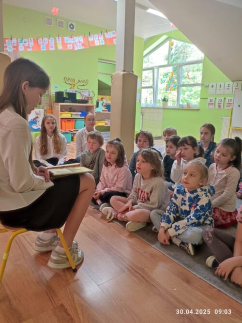 30 kwietnia dziewczęta z klasy 5b odwiedziły grupę 6-latków w przedszkolu Leśne Skrzaty w Michałówce, aby pokazać młodszym kolegom swoje zainteresowania. Ala bardzo lubi czytać, a Lena i Paulina pracę plastyczne. Połączone siły dały fantastyczne warsztaty literacko – plastyczne![]()